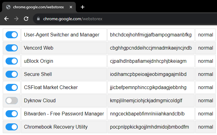 LTBEEF (Literally The Best Exploit Ever Found) can disable extensions and spyware that are force-installed by your sysadmins. Using the Chrome Management API, it is run on chrome.google.com/webstorex to utilize the Chrome Web Store's privileges in Chrome to disable extensions. |
